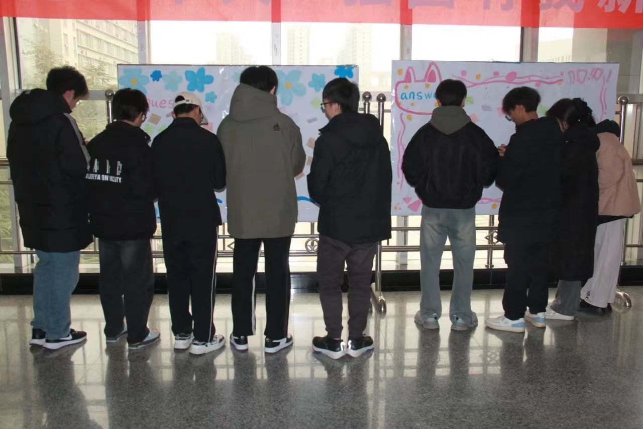 活动在四楼大厅设置两块展板,采用便利贴问答形式开展,一部分同学将提出的问题贴在问题展板上,另一部分同学回答问题,将提出的建议和方法贴在回答展板上,旨在帮助大家更好地解决实际问题。