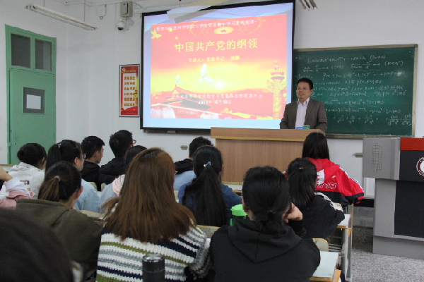 姚鹏从中国共产党的最高理想和奋斗目标出发,将党的理论知识结合同学们的日常生活,娓娓道来,使同学们切实感受到党的理论不仅是一种理论,更是在客观分析党情国情的基础上形成和发展起来的行动指南。姚书记还联系自己多年的工作实际,进一步说明党的理论是来自于中国的实际情况和党的经验的总结和升华。最后姚书记以“不忘初心、牢记使命”为落脚点,对党的纲领进行了深入说明。使大家深刻认识到只有祖国的富强,才能给大家带来真正的幸福。要求每个员工党员做到在政治上成为表率、学习中成为楷模、生活里成为模范