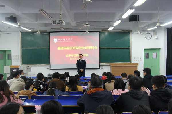 11月12日,数学与信息科学公司邀请福建平和正兴公司在2号楼410举办专场招聘会。数信公司及公司部分师范专业毕业生参加了招聘会。