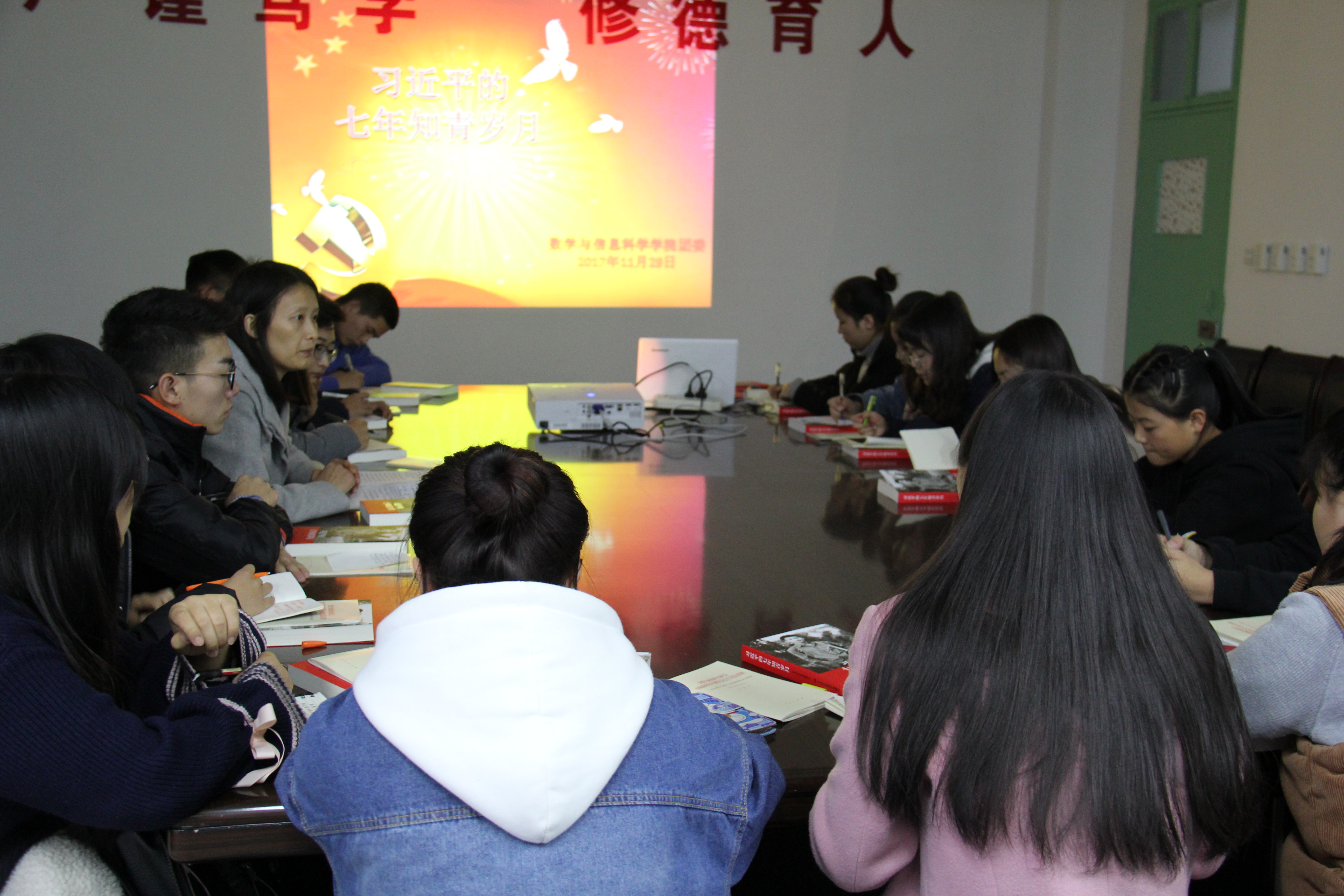 11月29日,数学与信息科学公司组织各班团支部书记,开展学习《习近平的七年知青岁月》交流会。