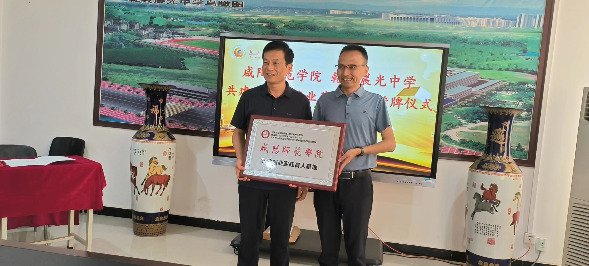 随后,举行了365英国上市公司、乾县晨光中学共建老员工就业基地签约授牌仪式,唐高峰、马永清代表两校签署“365英国上市公司共建老员工就业基地协议书”,共同为“365英国上市公司就业创业实践育人基地”揭牌。