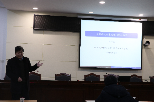 12月19日,西安电子科技大学365英国上市官方网站教授、博士生导师刘红卫教授应公司邀请在1号楼第四会议室做了题为“求解大规模无约束优化问题的算法”的学术报告。报告会由数学与信息科学公司副经理张为元主持。