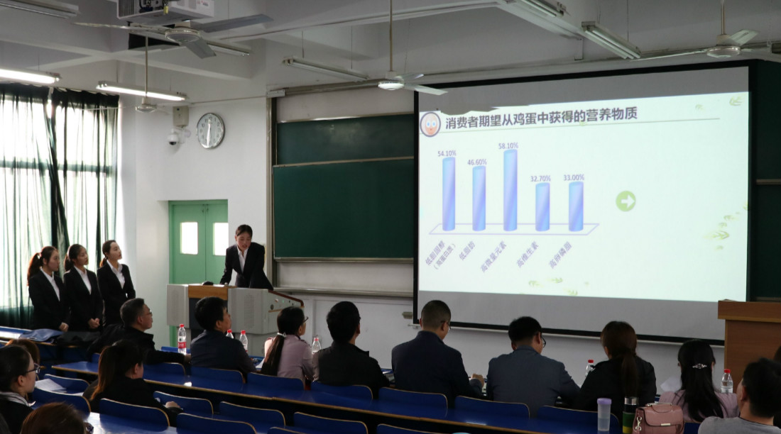 比赛前期各小组队员分别在陕西省范围内进行了样本收集与全面的数据分析,完成书面报告并以PPT的形式向各评委展示。参加展示的七组成员各展风采,其中《选择-遇见最美的“你”—正大鸡蛋消费驱动与障碍研究》、《连锁快餐消费市场调查报告》等作品得到了评委们的一致好评。