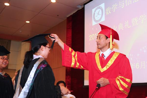 随后,公司领导分别为数学与信息科学公司2015届“校级优秀员工干部”、“校级优秀毕业生”颁发荣誉证书,经理唐泉博士为2015届全体本、专科毕业生颁发毕业证、学位证,并为本科毕业生进行拨穗。