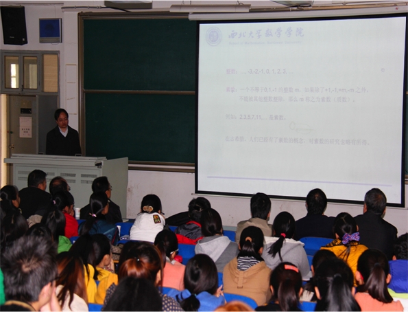 刘华宁教授的报告内容丰富,思想深刻,深入浅出,幽默风趣,为广大师生展示了迷人的素数世界,介绍了在素数分布研究中一些著名数学家的重要的工作与思想方法,对孪生素数探索的历史过程做了精彩的呈现。报告融知识性、趣味性和励志性于一体,素数探索过程的曲折与艰辛,数学家们坚持不懈终获成功的励志故事时时打动着报告会现场的每一位师生,整场报告掌声不断。刘华宁教授还和现场师生就学术研究和考研等问题进行了交流互动。报告会反响很好,师生们表示深受教育和启发,获益匪浅。