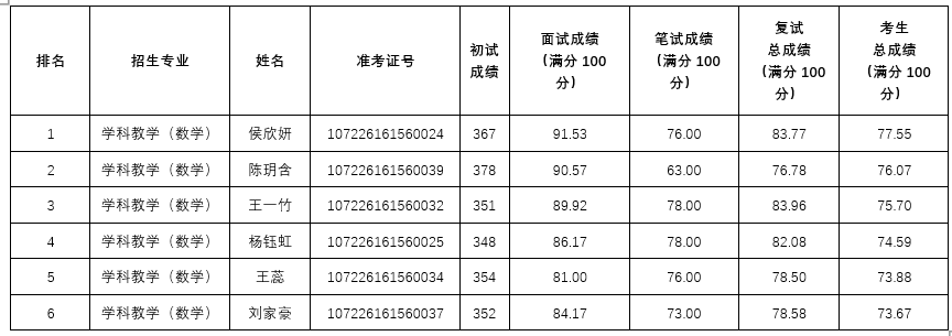 招生一志愿拟录取名单予以公示: